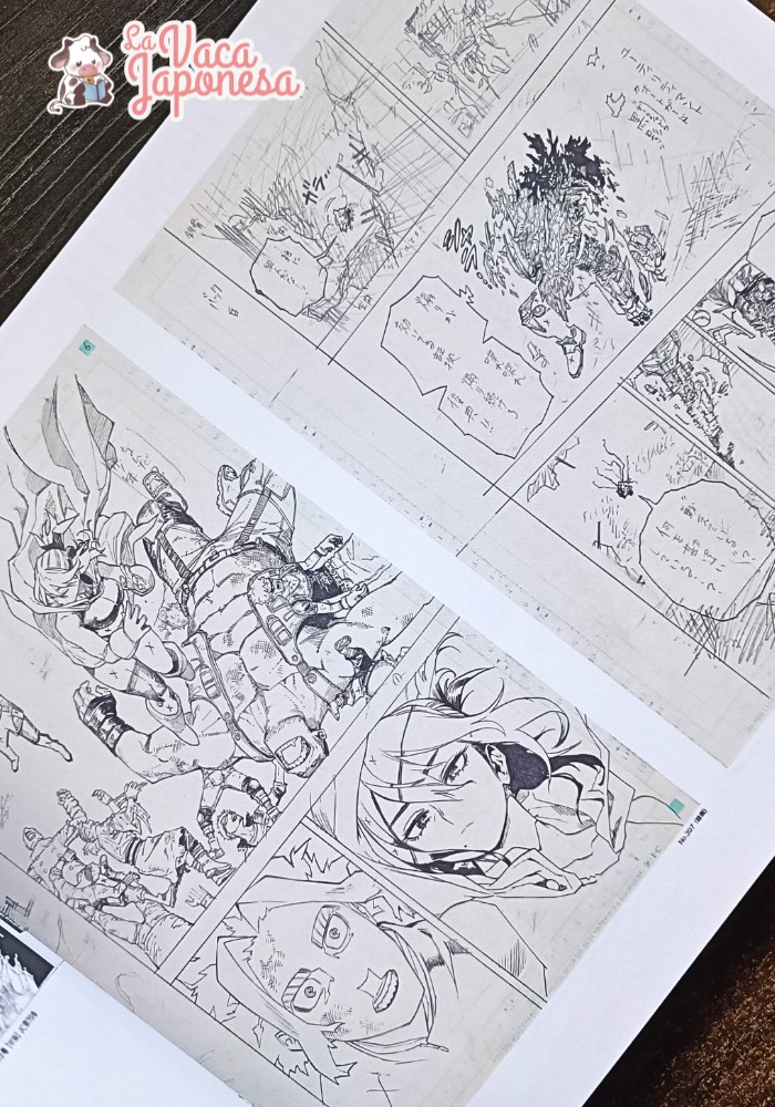 La mayoría de las páginas de este catálogo corresponden a viñetas del manga acompañadas de breves comentarios sobre las escenas. En menor medida, se incluyen ilustraciones, entre ellas algunas nuevas que fueron creadas por Horikoshi especialmente para la exhibición.