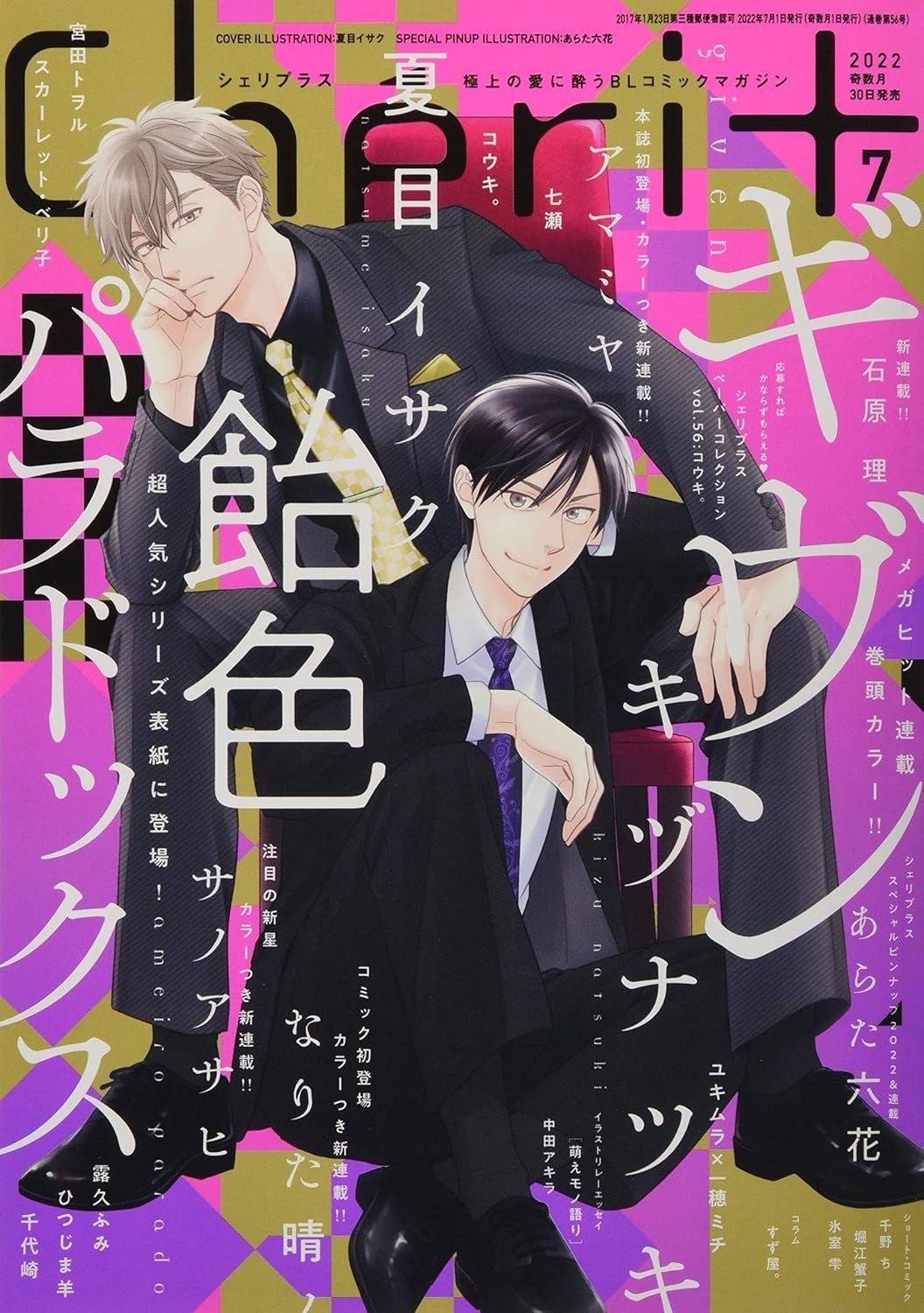 Revista japonesa Boy’s Love (BL) Cheri+ 2022 No.7 con portada de Ameiro Paradox de Isaku Natsume.