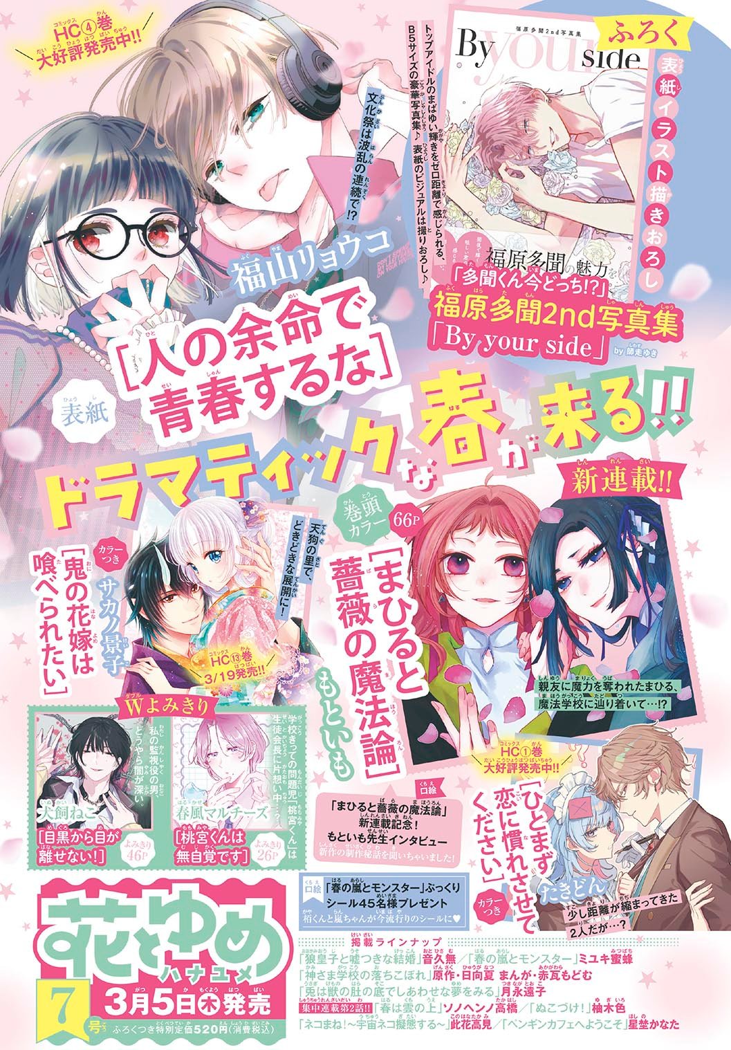 Revista Hana to Yume 2026 No.7 con portada de Hito no Yomei de Seishun suru na (Don’t Spend My Last Years on Your Youth) de Ryouko Fukuyama.