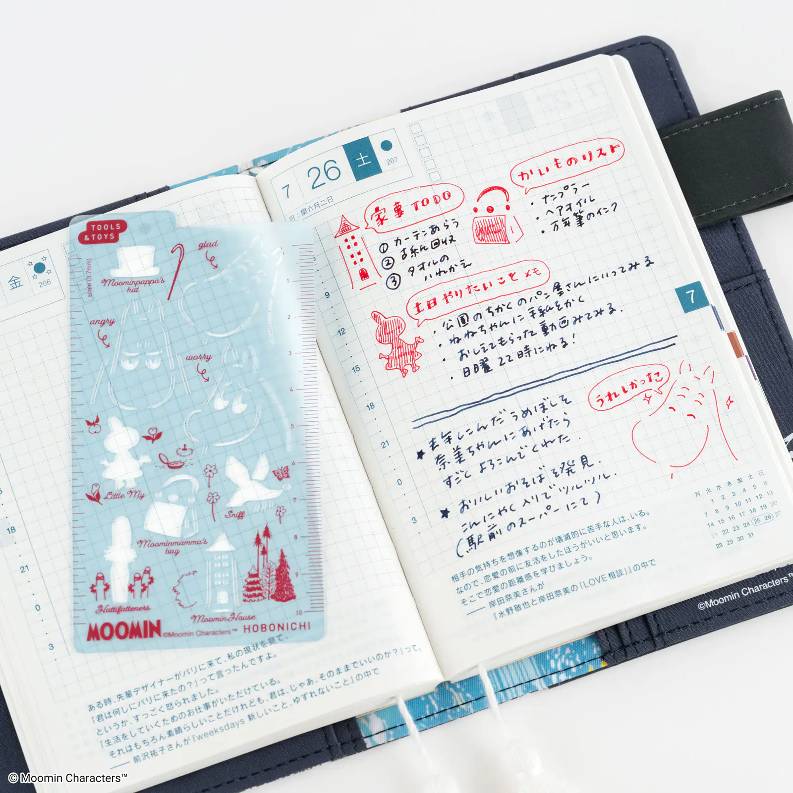La plantilla también funciona como una regla, con medidas de hasta 10 cm. Es delgada y con forma de tarjeta, por lo que cabe perfectamente en el bolsillo de la funda de tu Hobonichi Techo.