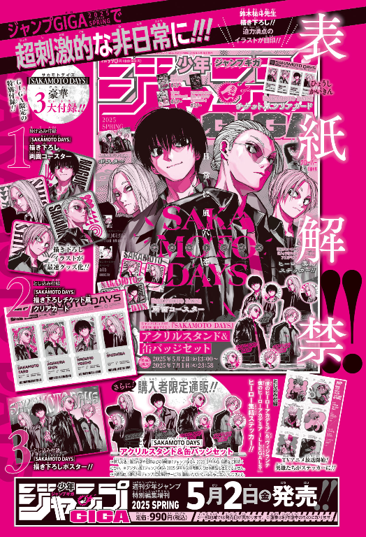 Revista Jump GIGA 2025 SPRING con portada de Sakamoto Days de Yuuto Suzuki en idioma japonés.