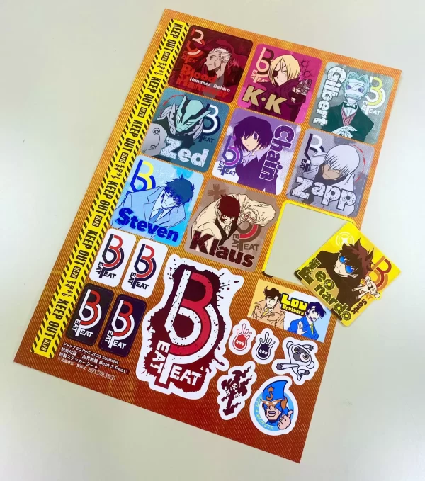 Incluye stickers de Kekkai Sensen – Beat 3 Peat.