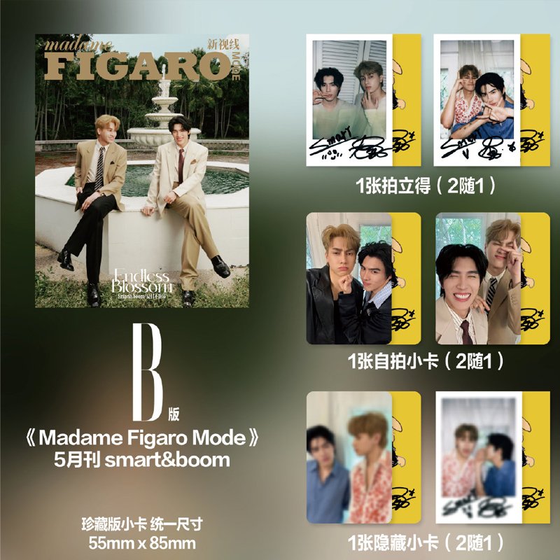Revista Madame Figaro Mode con portada de Jiratpisit Jaravijit (Boom) y Chisanupong Paungmanee (Smart) del drama BL tailandés Top Form.