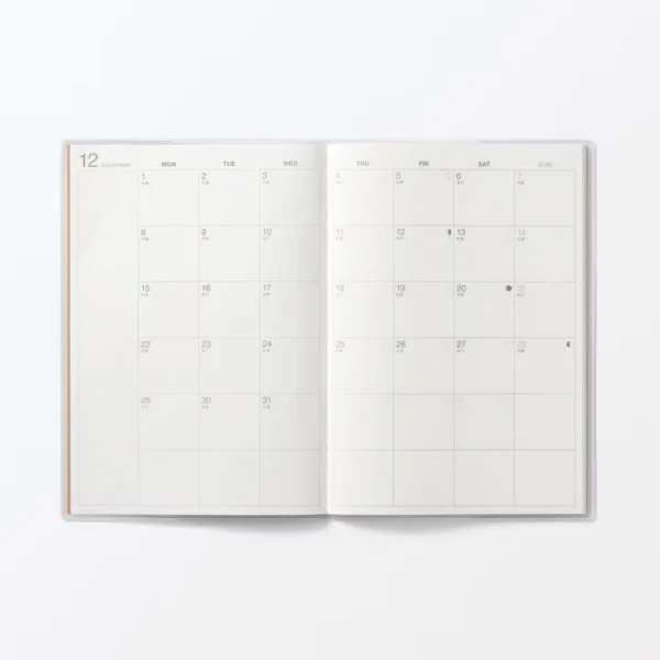 *Si bien el planner se encuentra en idioma inglés, el calendario mensual muestra el Rokuyo (calendario tradicional de la fortuna) y festividades en idioma japonés.