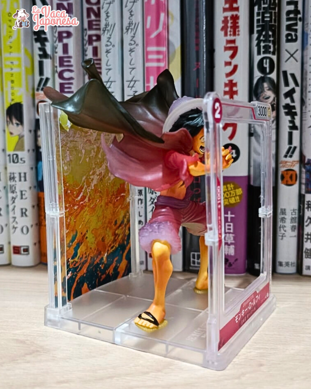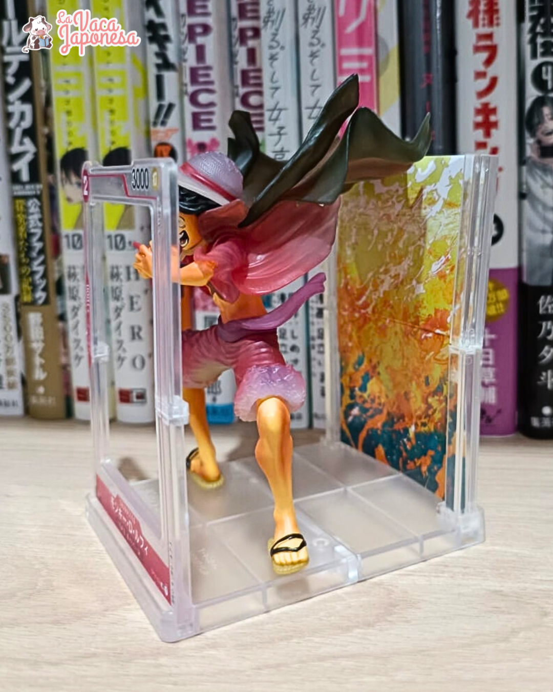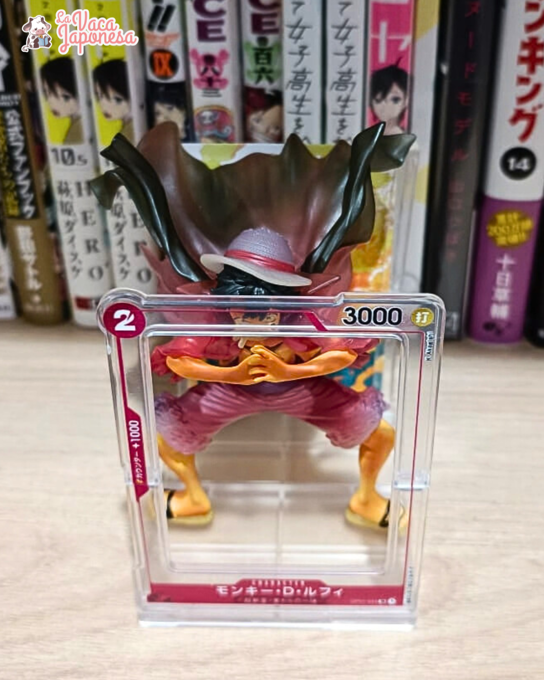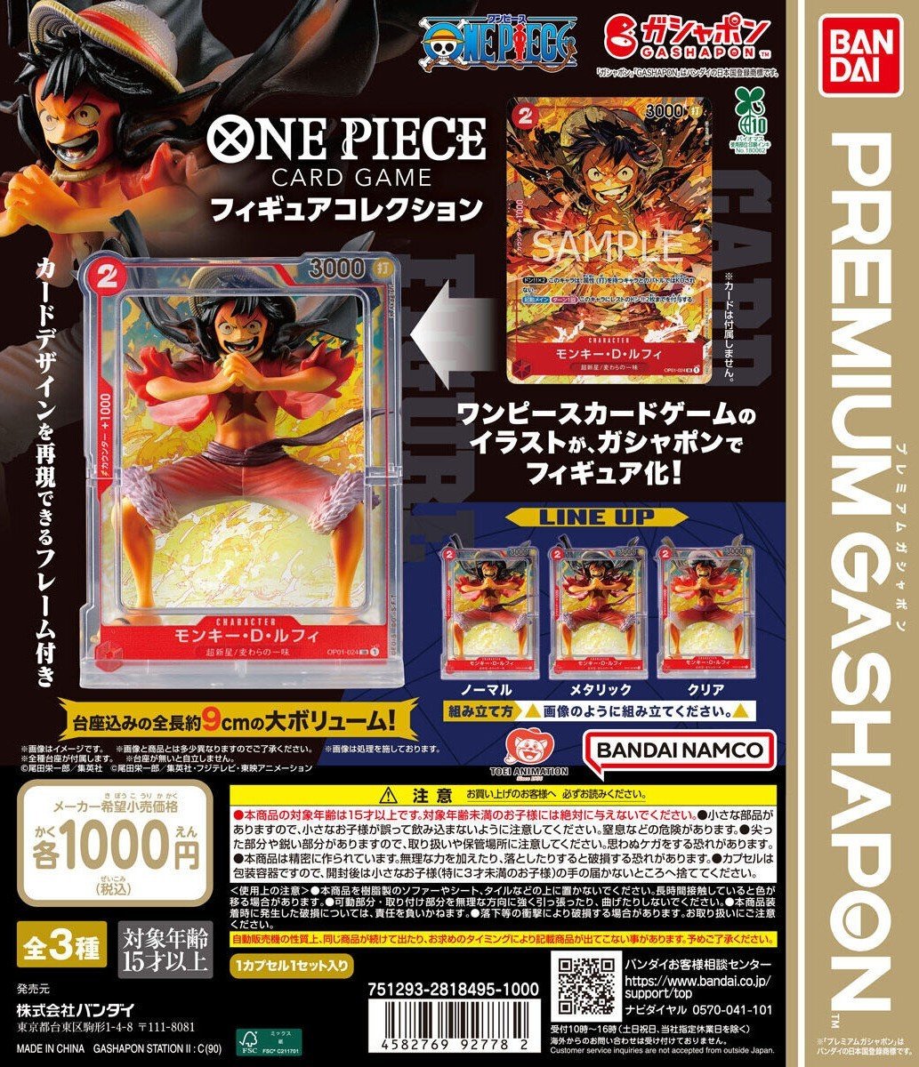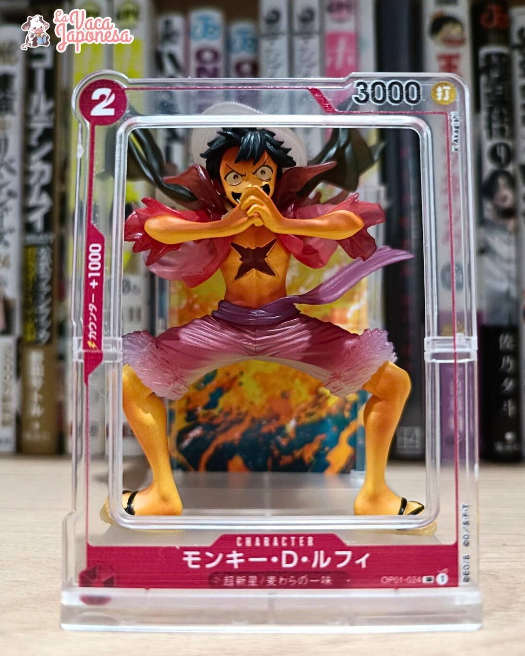 Este gashapon toma como base la ilustración del TCG de One Piece, recreando en figura la poderosa pose de la carta SR de Luffy con arte alternativo del booster pack ROMANCE DAWN.