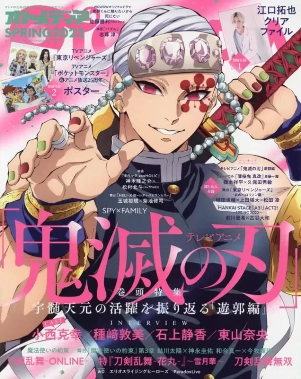 Revista Otomedia SPRING 2022 con portada Kimetsu no Yaiba y contraportada de Takuya Eguchi.