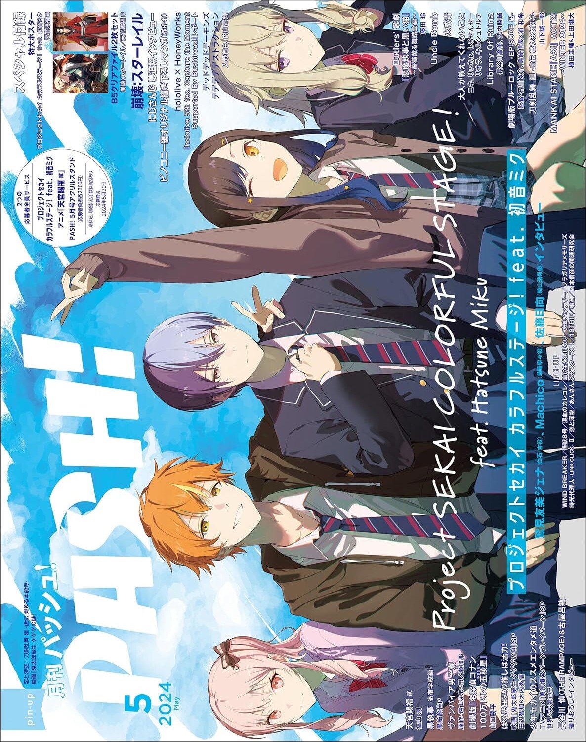 Revista japonesa PASH! 2024 No.5 con portada de Project Sekai Colorful Stage! feat. Hatsune Miku y contraportada de Honkai: Star Rail.