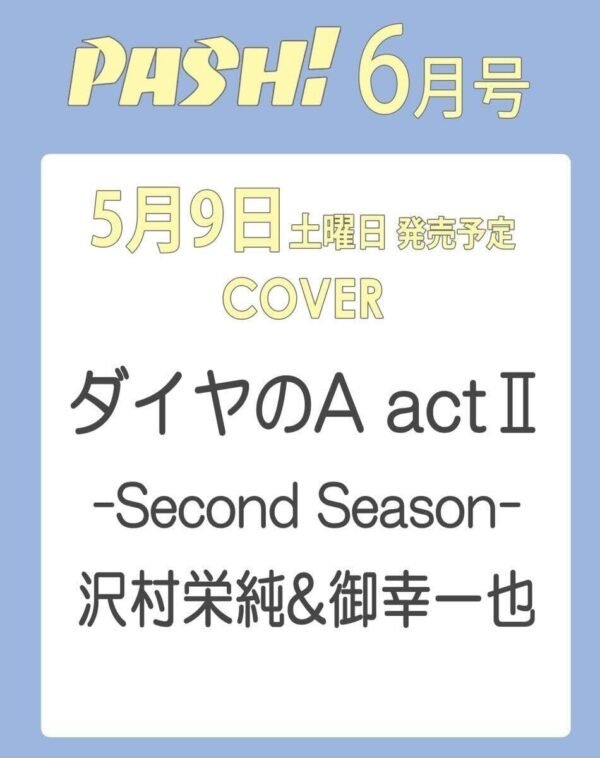 Revista japonesa PASH! 2026 No.6 con portada de los personajes Eijun Sawamura & Kazuya Miyuki de Daiya no Ace Act II.