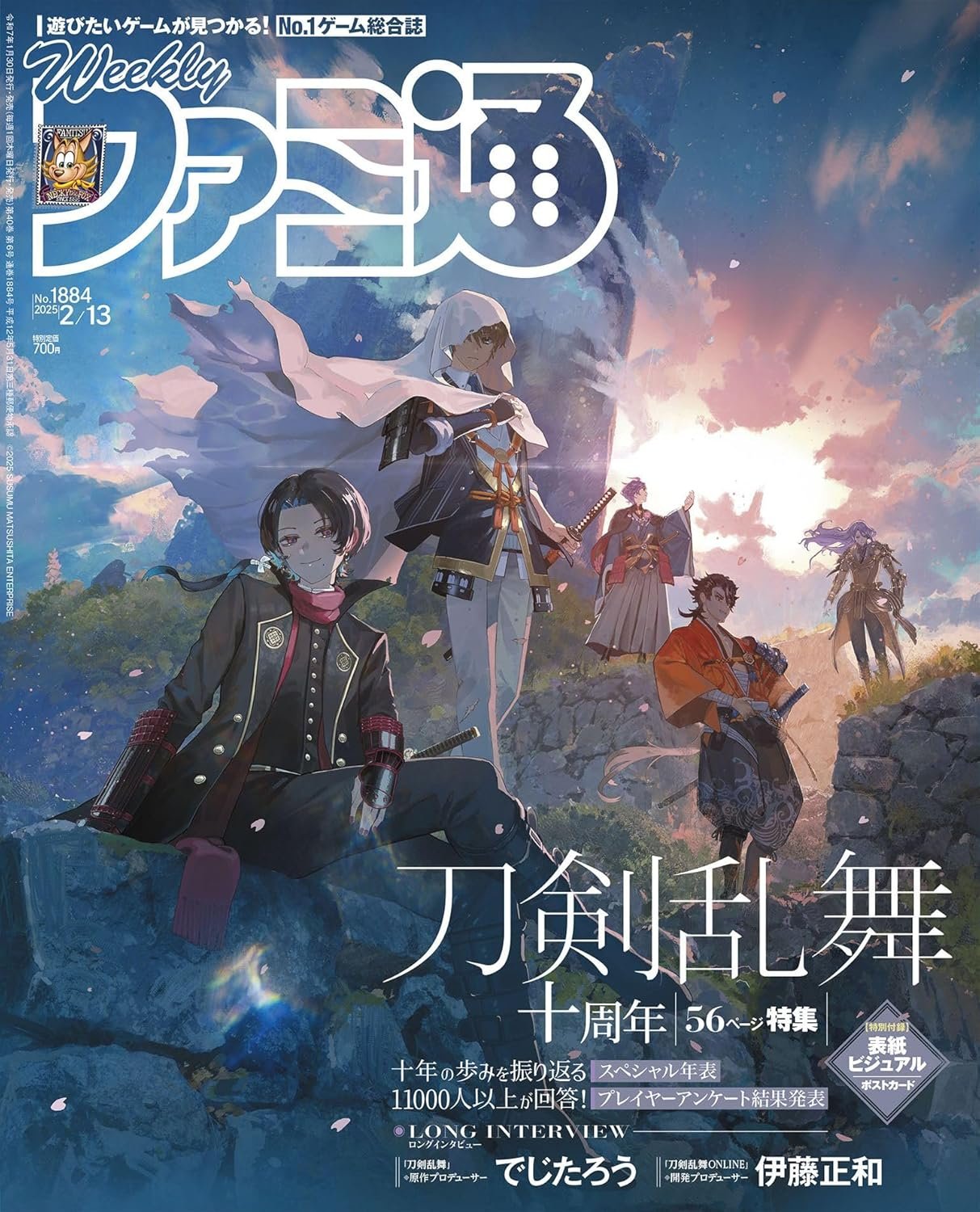 Revista Weekly Famitsu No.1884 (13 de febrero 2025) con portada y artículo especial de 56 páginas de Touken Ranbu conmemorando su 10mo aniversario.