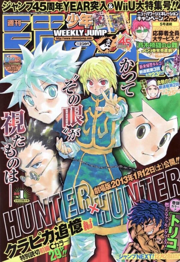 Incluye la primera parte del one-shot Kurapika’s Memories, así como capítulos de One Piece, Bleach, Naruto, Gintama, Shokugeki no Soma, Nisekoi, Haikyuu!!, Beelzebub y más!